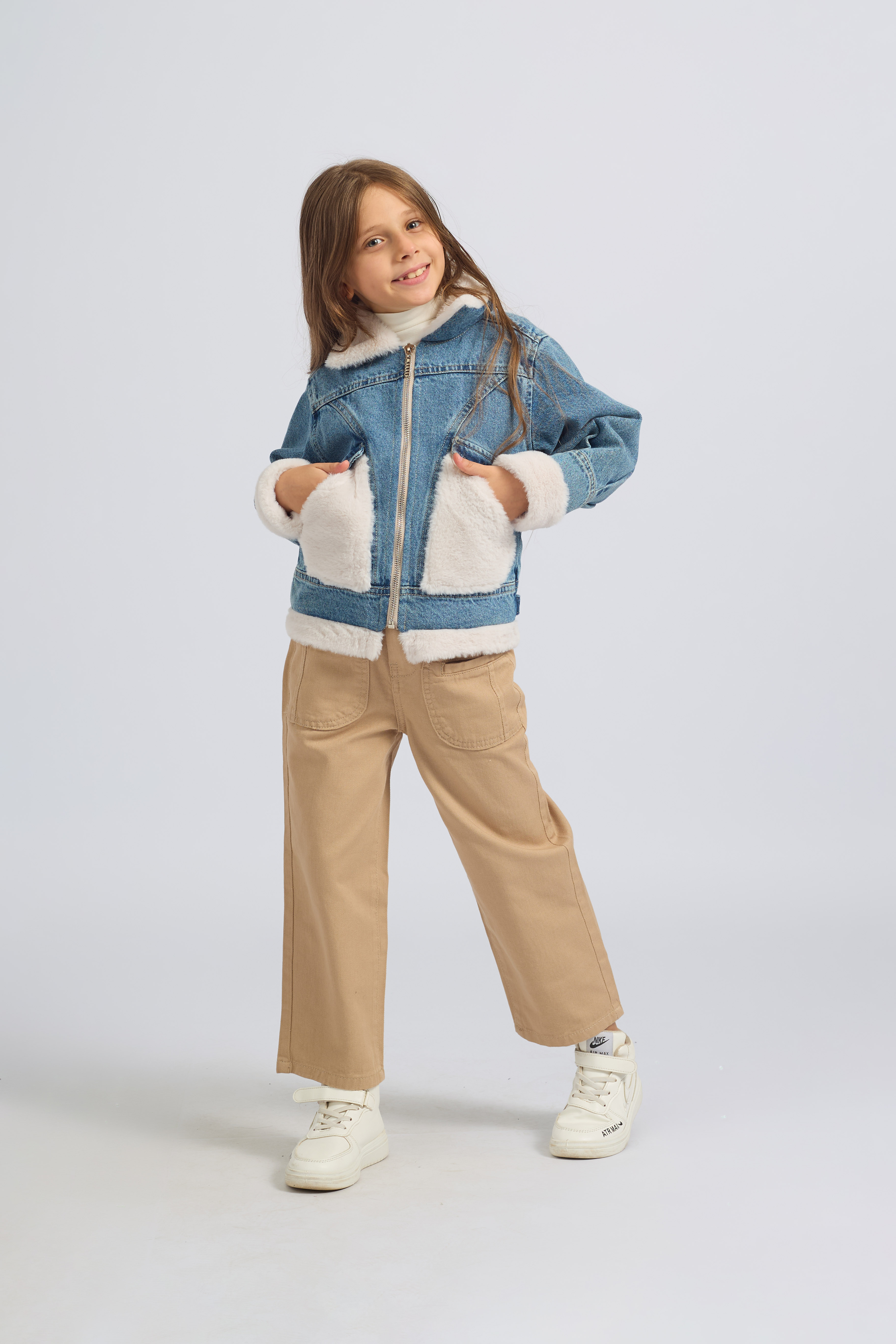 جاكيت جينز بناتي مبطن فرو مريح ومناسب لاطفالك