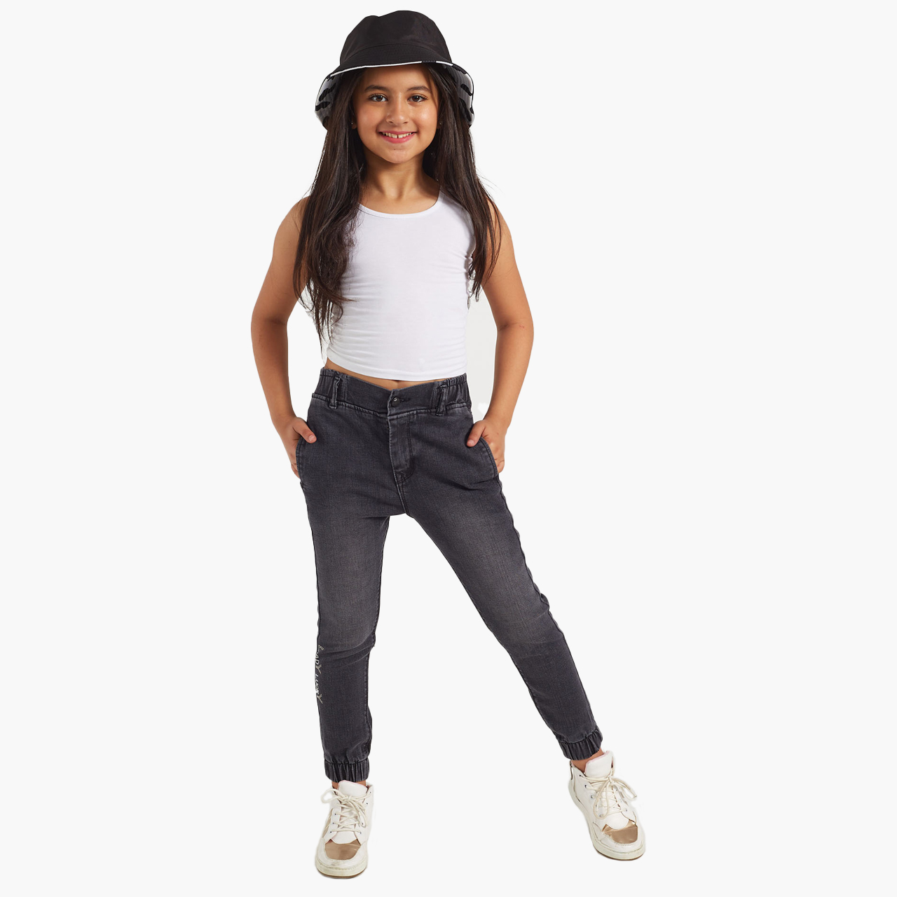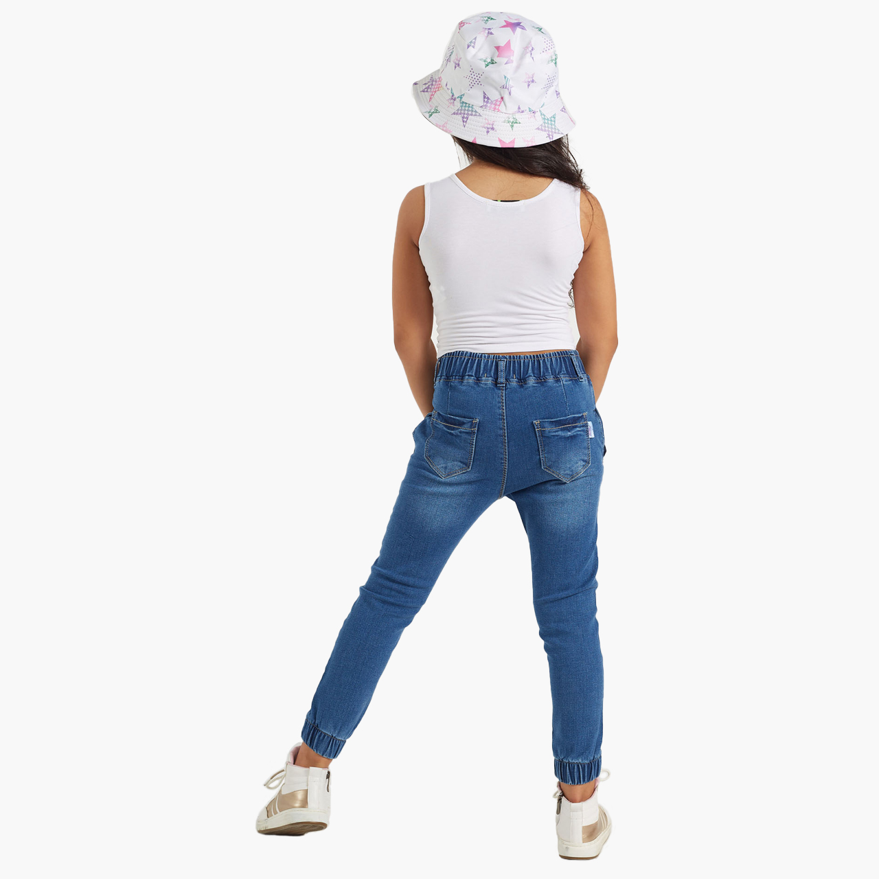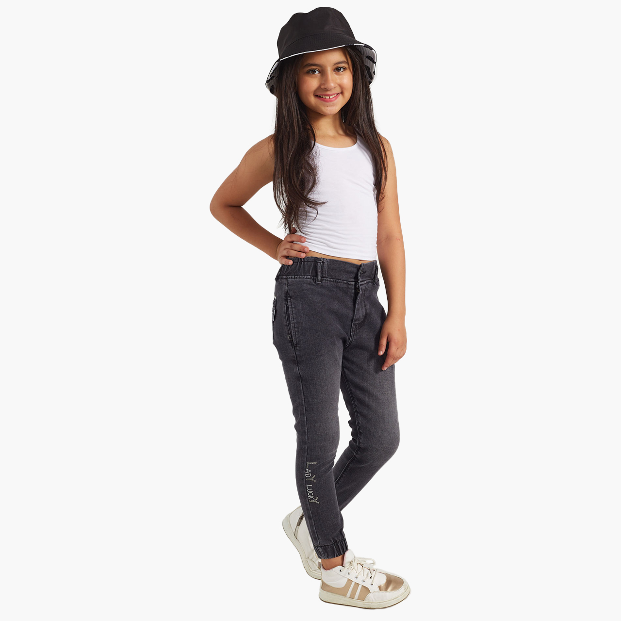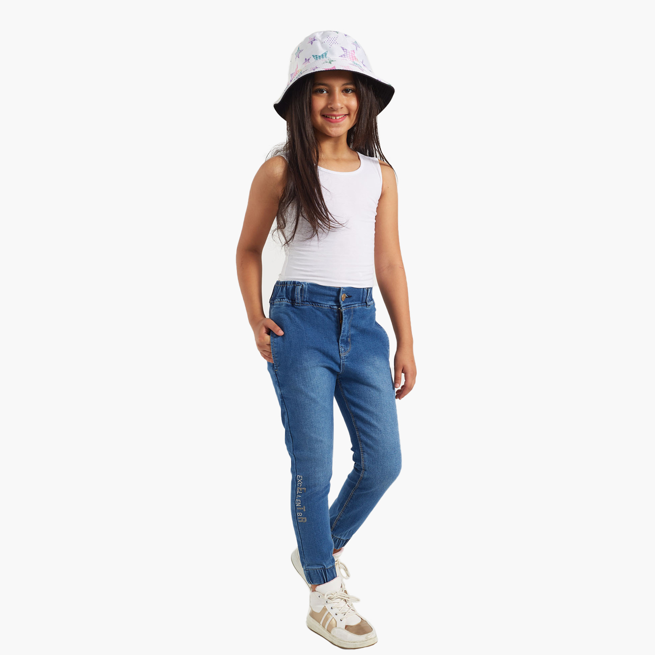 We offer mid-rise girl's jeans with a comfortable elastic waistband, two specially designed back pockets for a unique touch, and delicate side embroidery near the bottom of the pants. This enhances the appeal and elegance of every little girl seeking a distinctive look.