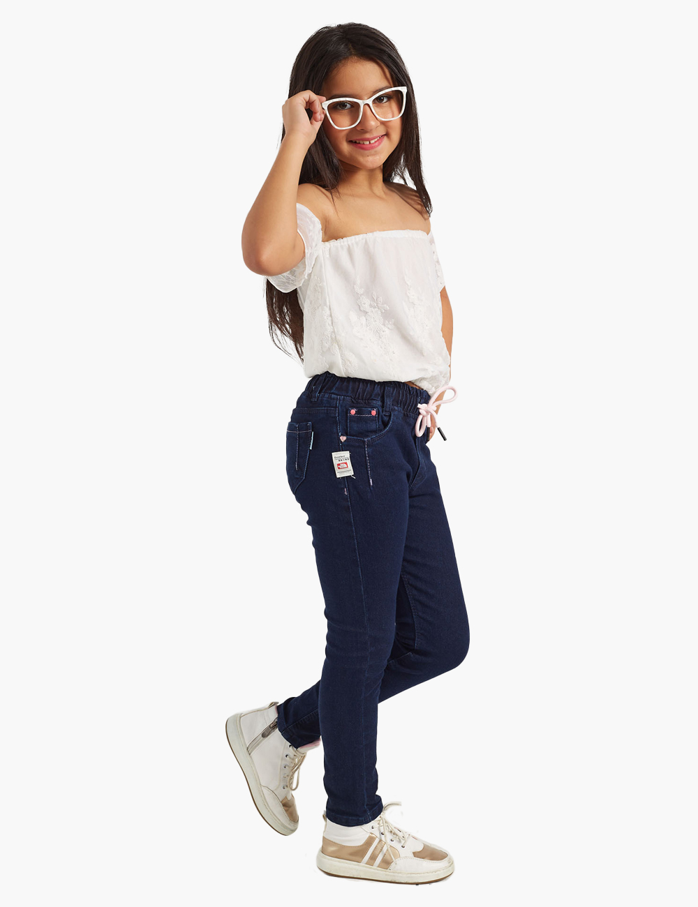 This pants feature a simple design and an elastic waistband that allows for a comfortable fit, made from high-quality stretchy fabric that ensures freedom of movement for girls. The pants come with a colorful drawstring at the waist for an elegant touch, along with front and back pockets that enhance its functionality and beauty.