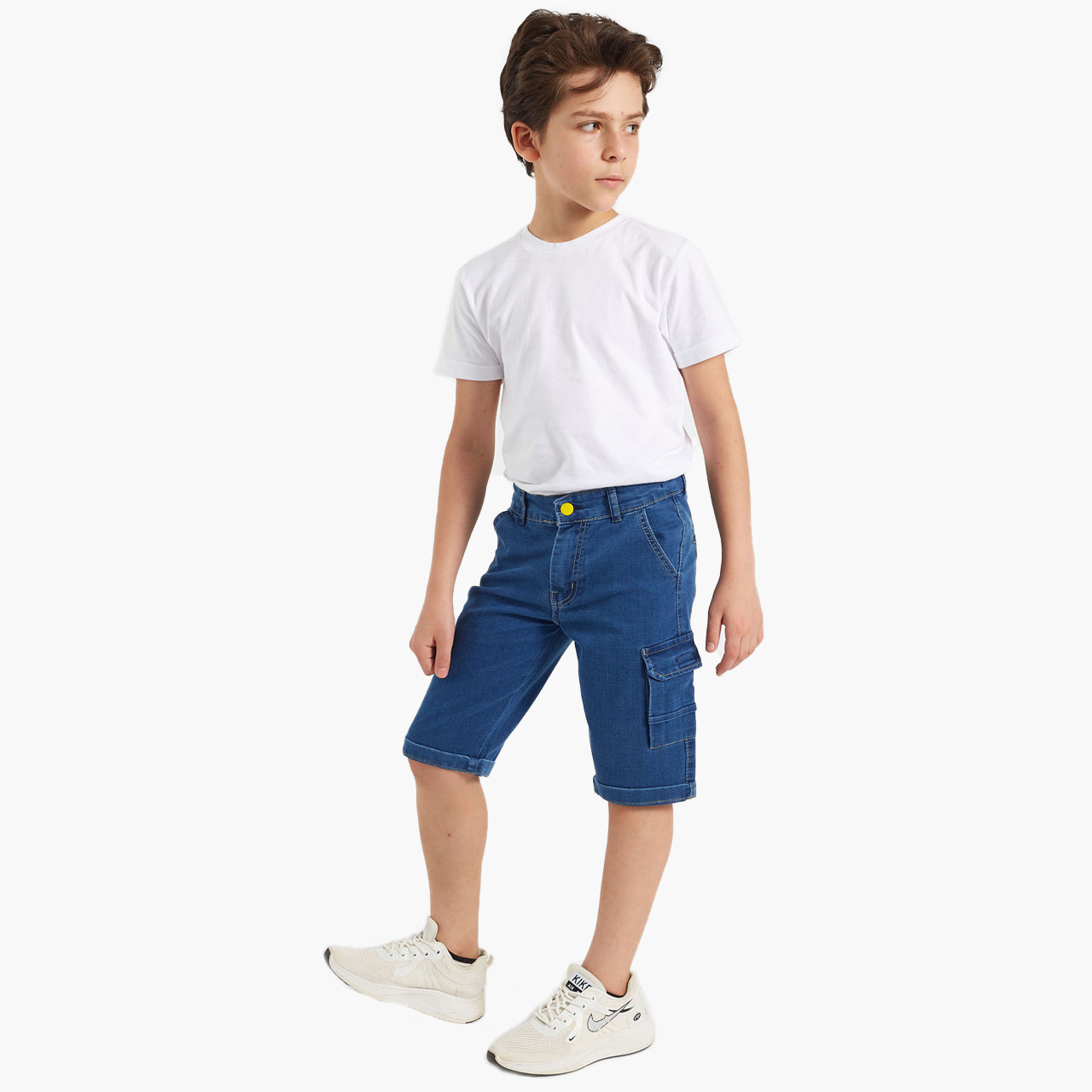 Pantacourt Boy's jeans add a modern and stylish touch to your store's clothing collection, featuring side pockets and leather trim details that add a distinctive touch.